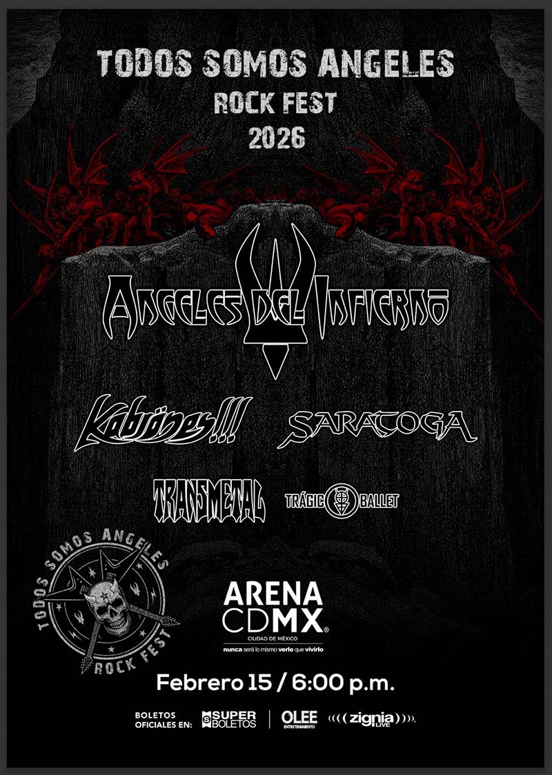 El Todos Somos Angeles Rock Fest 2026 CDMX llega a la Arena CDMX con una alineación histórica. Angeles Del Infierno encabeza una noche dedicada al heavy metal en español. La banda celebra su legado con invitados especiales de alto calibre.